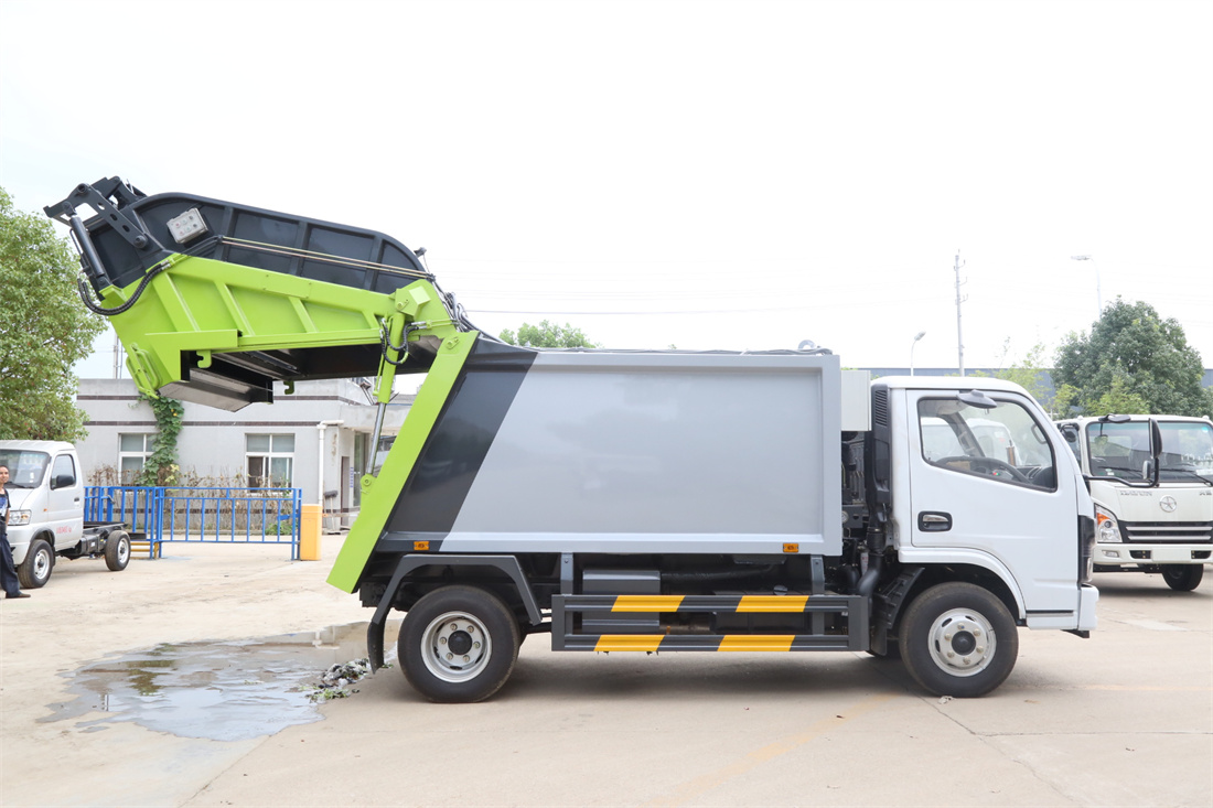 上裝配置:垃圾箱容積:6方,新款平面弧形廂體,廂體材料為武鋼優(yōu)質(zhì)碳鋼,PLC一鍵操作**,手電一體操作模式,兩側(cè)雙電控,帶駕駛室內(nèi)操作,底板支撐加強(qiáng),雙向壓縮,開放式易清潔污水箱。壓縮式垃圾車采用機(jī)電液一體化技術(shù),借助機(jī)、電、液聯(lián)合自動**系統(tǒng)、電腦**、手動操作系統(tǒng),通過填裝器和推鏟等專用裝置,實(shí)現(xiàn)垃圾倒入、壓碎或壓扁、強(qiáng)力裝填,把垃圾擠入車廂并壓實(shí)和推卸,污水全部進(jìn)入污水廂,解決了垃圾運(yùn)輸過程中的二次污染的問題。壓縮式垃圾車具有自動反復(fù)壓縮以及蠕動壓縮功能,壓縮比高、密封性好、裝載量大﹑操作方便、環(huán)保性好﹑整車?yán)霉β矢叩葍?yōu)點(diǎn)。作業(yè)自動化,垃圾收集方式簡便、高效。后翻轉(zhuǎn)機(jī)構(gòu)選裝:1、掛塑料桶式翻轉(zhuǎn)機(jī)構(gòu);2、掛鐵桶式翻轉(zhuǎn)機(jī)構(gòu);3、擺臂式翻轉(zhuǎn)機(jī)構(gòu); 4、簸箕斗式翻轉(zhuǎn)機(jī)構(gòu)。