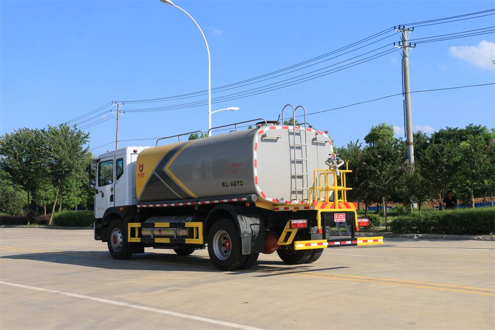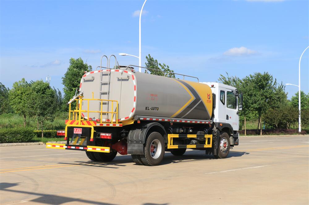 灑水車前裝有鴨形噴嘴或圓頭沖嘴,后面裝有圓柱開灑水噴嘴或蓮蓬頭噴嘴,后部有一工作平臺(tái),裝配有水炮。后部還可裝8個(gè)噴嘴(選裝)。