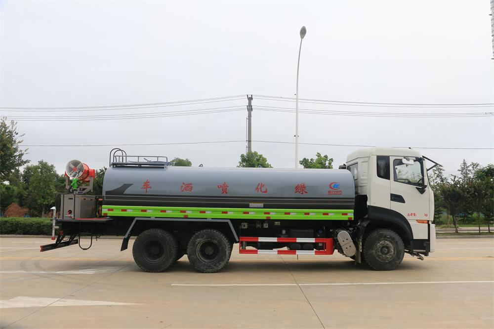 上裝配置:罐體容積 18-20立方,風(fēng)送式霧炮機(jī)組30米,40米選擇,罐體采用國(guó)標(biāo)Q235碳鋼材質(zhì),罐體厚度4MM,前后封頭5MM加厚型,罐體內(nèi)雙層隔板具有防波蕩作用,以減輕汽車(chē)行駛時(shí)罐內(nèi)液體沖擊;灑水車(chē)整車(chē)及外形尺寸嚴(yán)格按照**機(jī)動(dòng)車(chē)公告制作而成;裝配大功率專用灑水泵,前沖、后灑、側(cè)噴、后平臺(tái)帶綠化灑水炮,灑水炮可全方位旋轉(zhuǎn),可連續(xù)調(diào)成直沖狀、大雨、小雨、毛毛雨;配消防接口,自流閥,濾網(wǎng),帶自吸自排功能。前封頭帶水位計(jì),后平臺(tái)主管路帶1寸澆花接口,后爬梯,帶1個(gè)消防接頭,帶1個(gè)自流閥,1個(gè)過(guò)濾裝置,其余標(biāo)配。