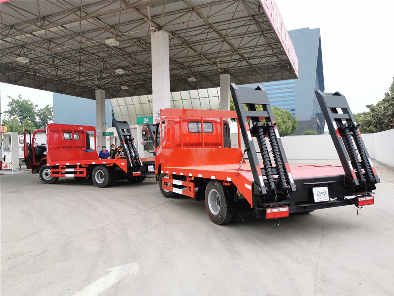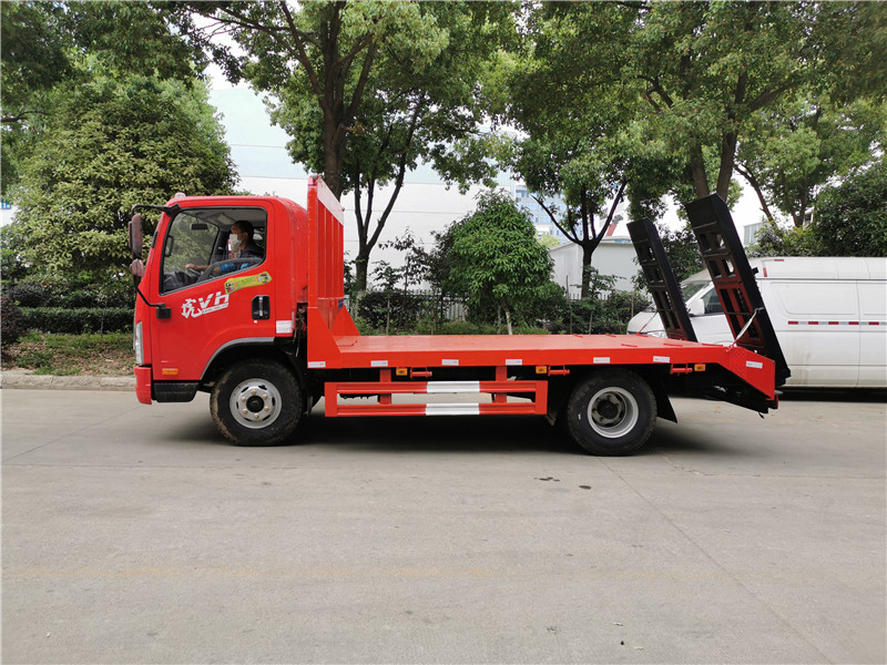 上裝采用五毫米花紋鋼板,100*100方鋼做橫梁,雙簧爬梯,可拉12噸以下挖機。